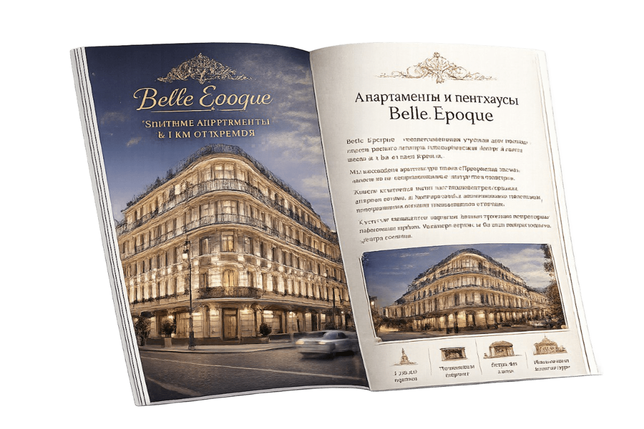 Расположение корпусов, архитектура и инфраструктура жилого квартала «Belle Epoque» в нашей pdf презентации.
