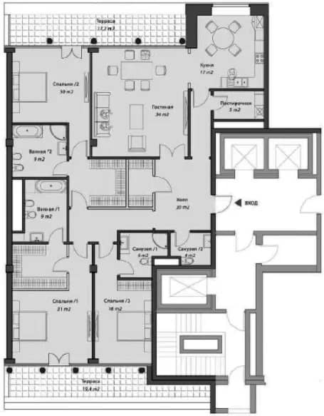 3 спальни