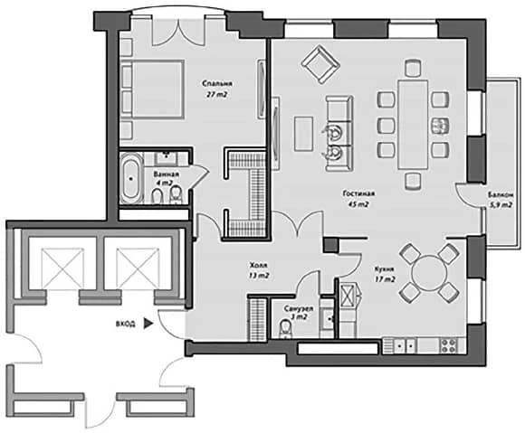 1 спальня