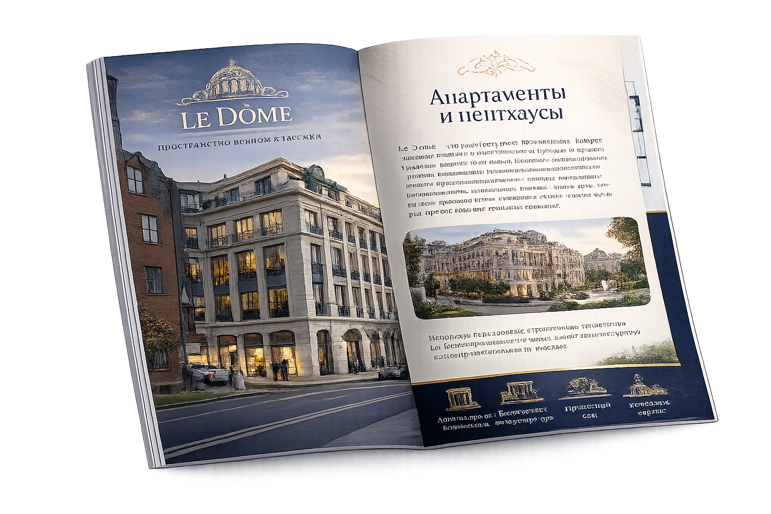 Расположение корпусов, архитектура и инфраструктура жилого квартала «Le Dome» в нашей pdf презентации.